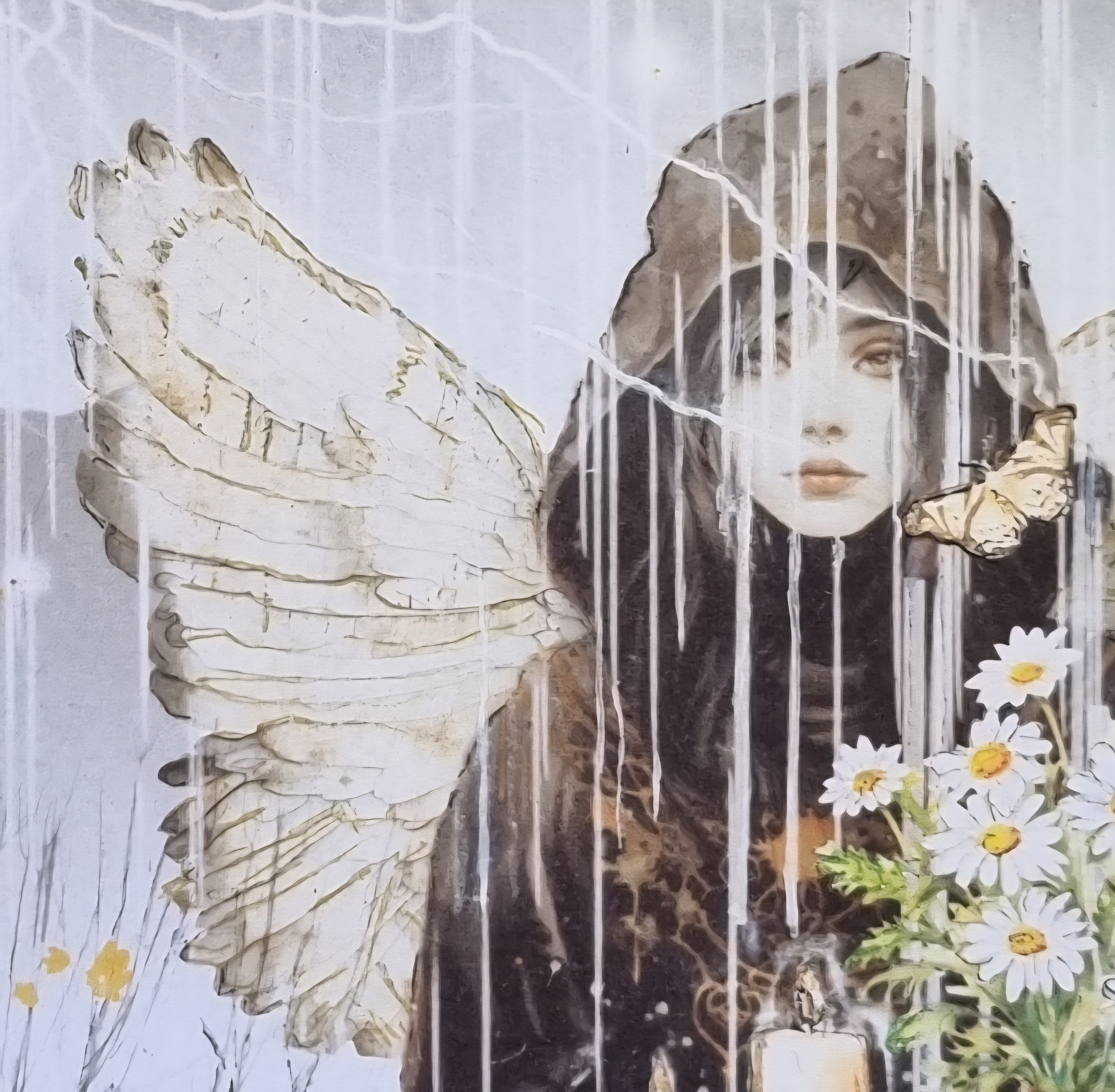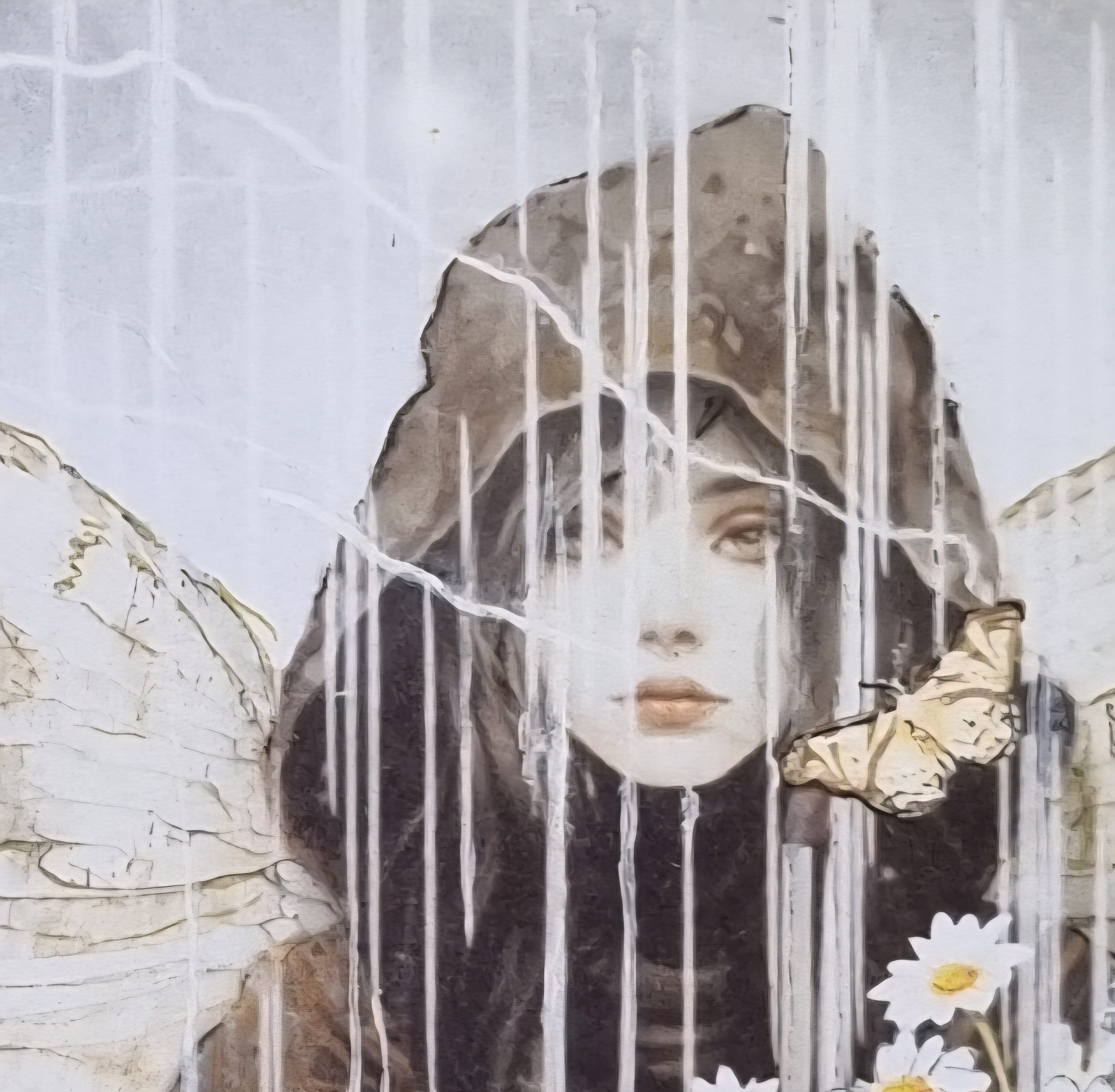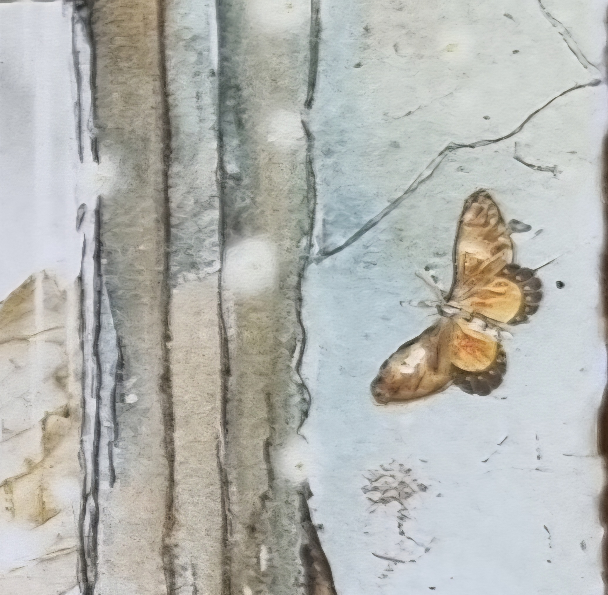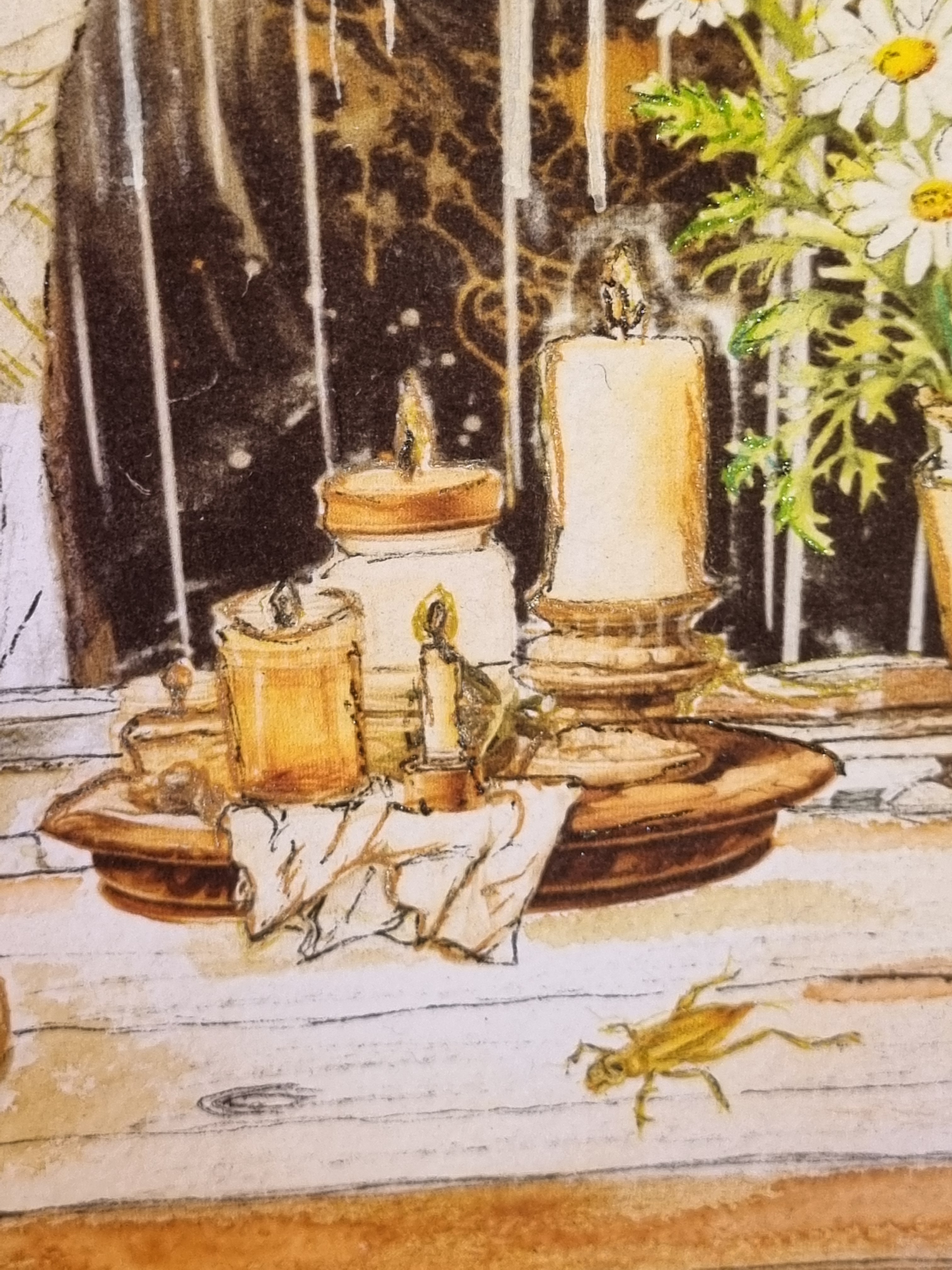 Lammas Tears is an original work on 12” x 12” cotton rag, deckle edged… in watercolour wash and organic hand made inks, framed in raw oak.
